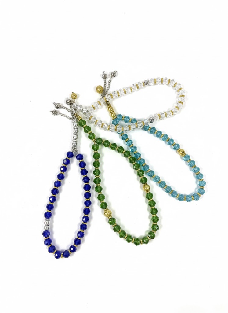 Ils sont composés de perles, souvent 33, ces perles de cristal facettées dans des tons de bleu, vert,violet , blanc /transparent