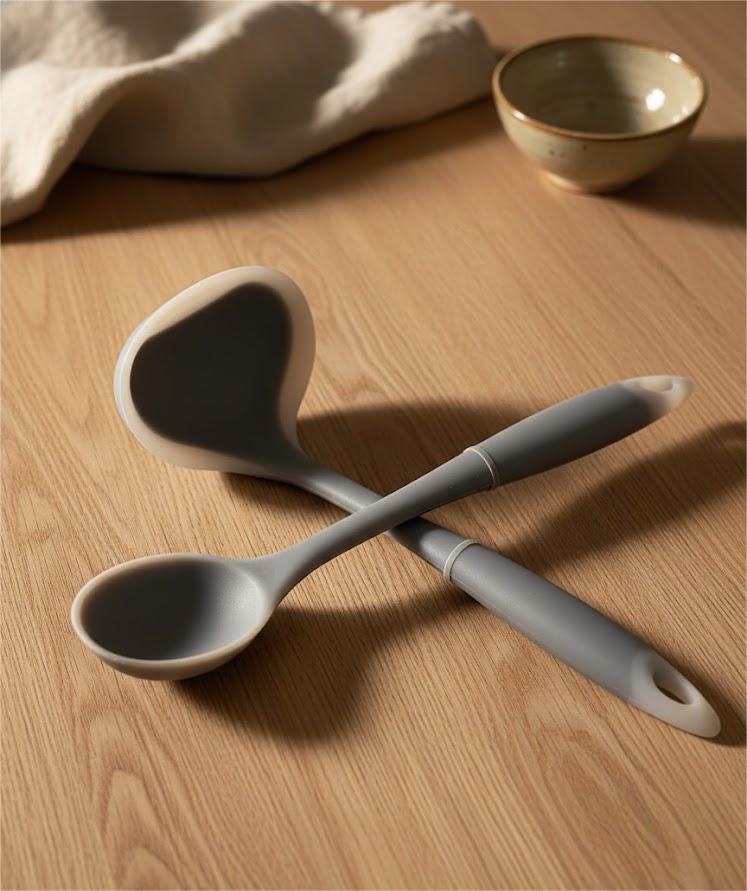 Composé d'une louche et d'une cuillère à badigeonner en silicone.