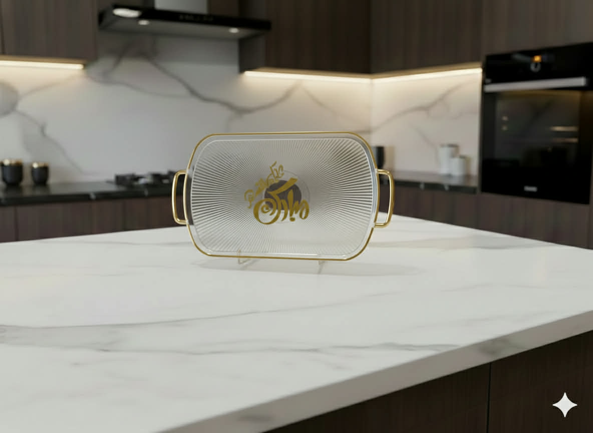 plateau ramadan en plexi disponible en blanc cassé et transparent ; dimension 34/23 cm