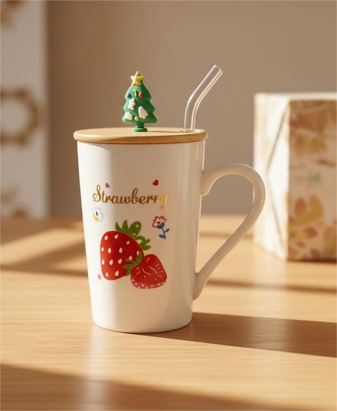 Mug en céramique avec couvercle et paille