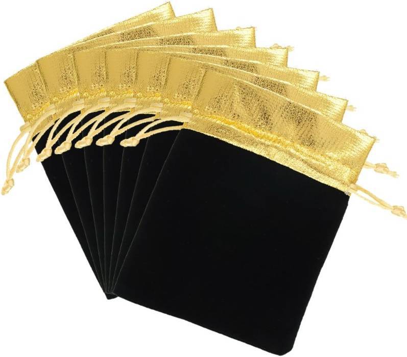 pochettes d'emballage en tissu velour avec Garniture de Documents Dorés, Couleur Noire beige et Rouge, 7 x 9.5cm, 12 Pièces/Lot