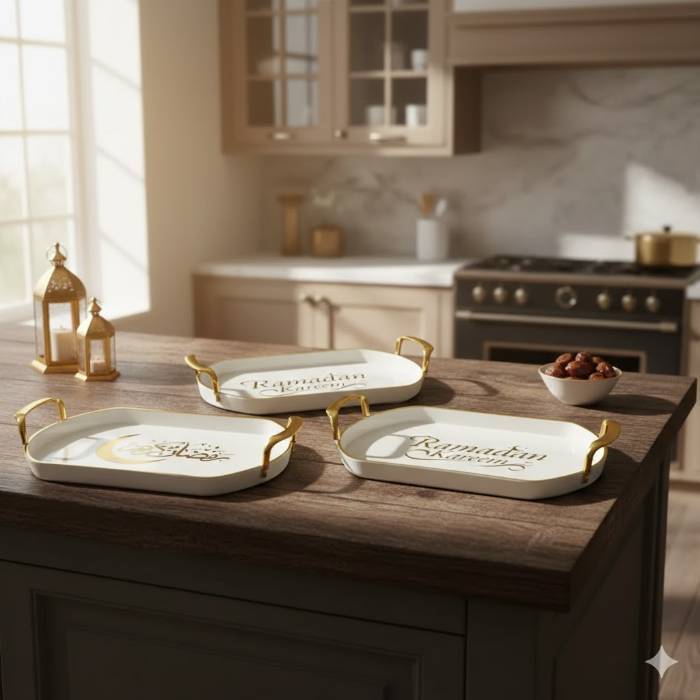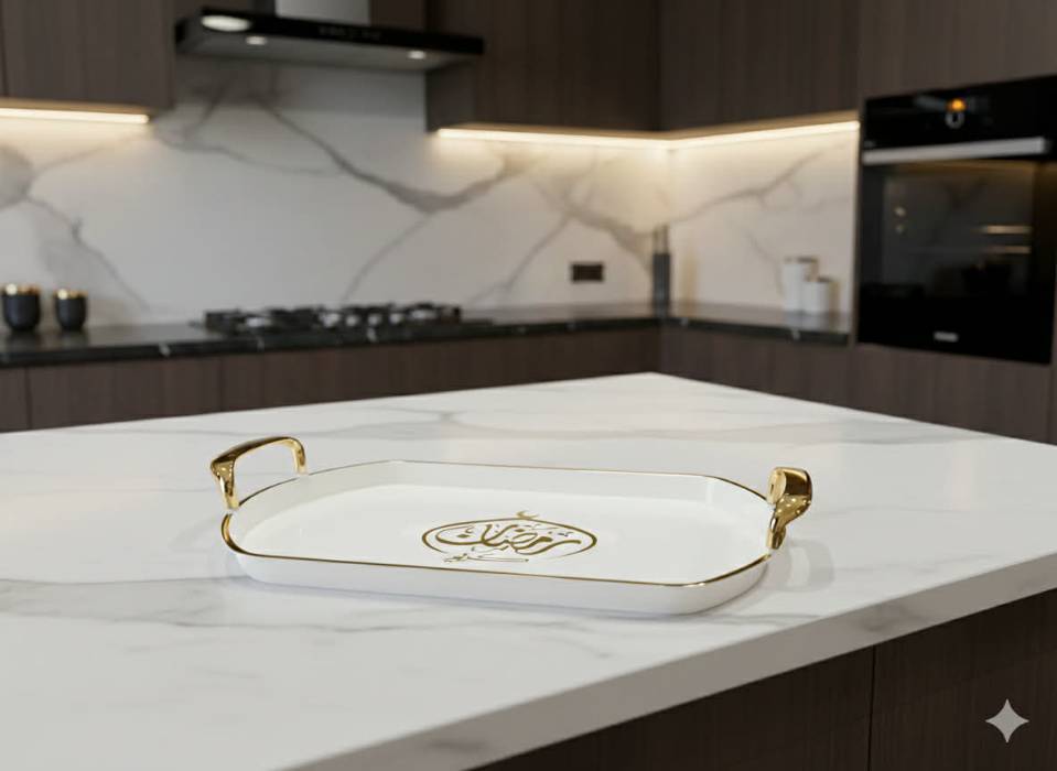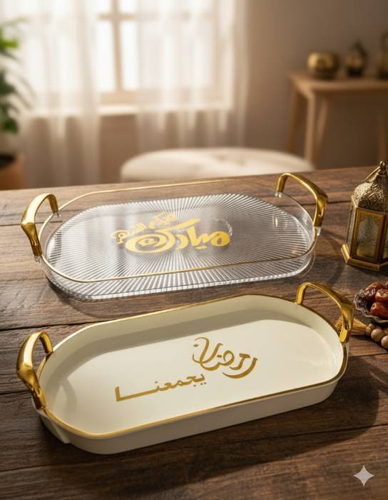 plateau ramadan en plexi disponible en blanc cassé et transparent ; dimension 34/23 cm