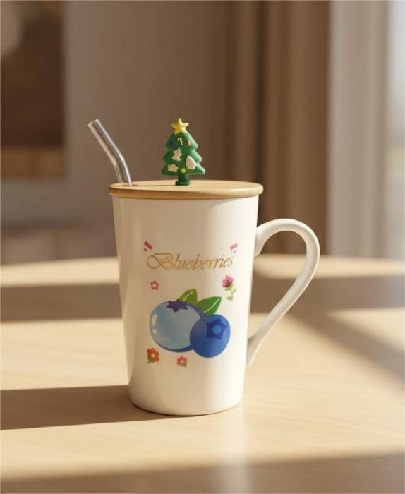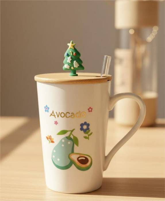Mug en céramique avec couvercle et paille
