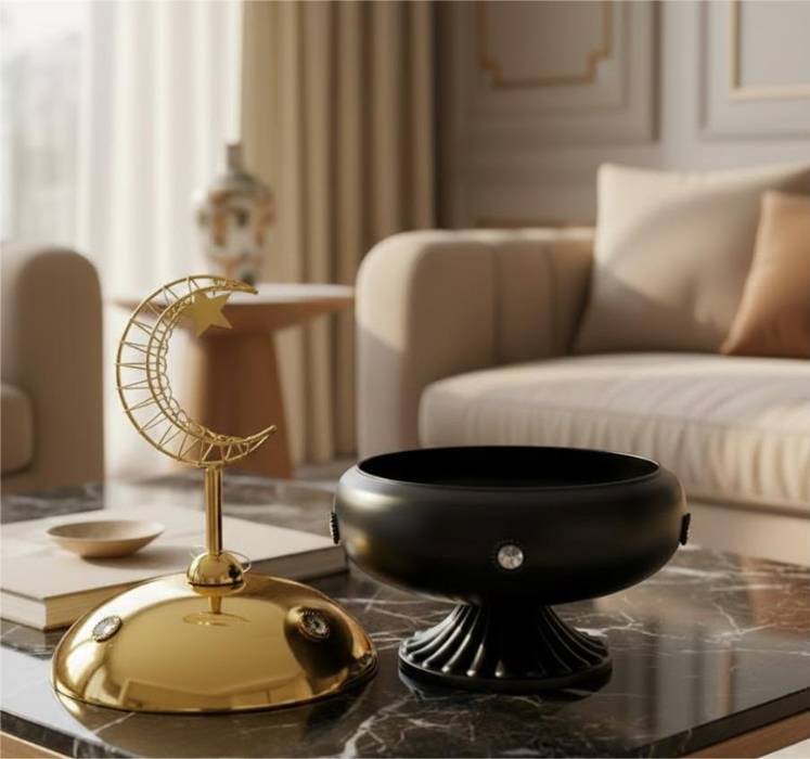 bonboniere décoratif de Ramadan en métal noir et doré.